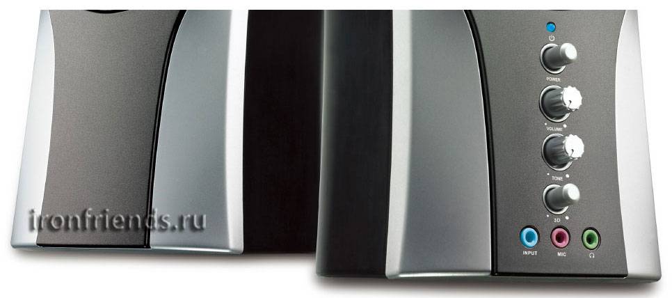 Кроме указанных разъемов на колонках может быть гнездо для подключения наушников, что весьма удобно и аудиовход к которому можно подключить, например, смартфон или MP3-плеер для проигрывания музыки без компьютера.