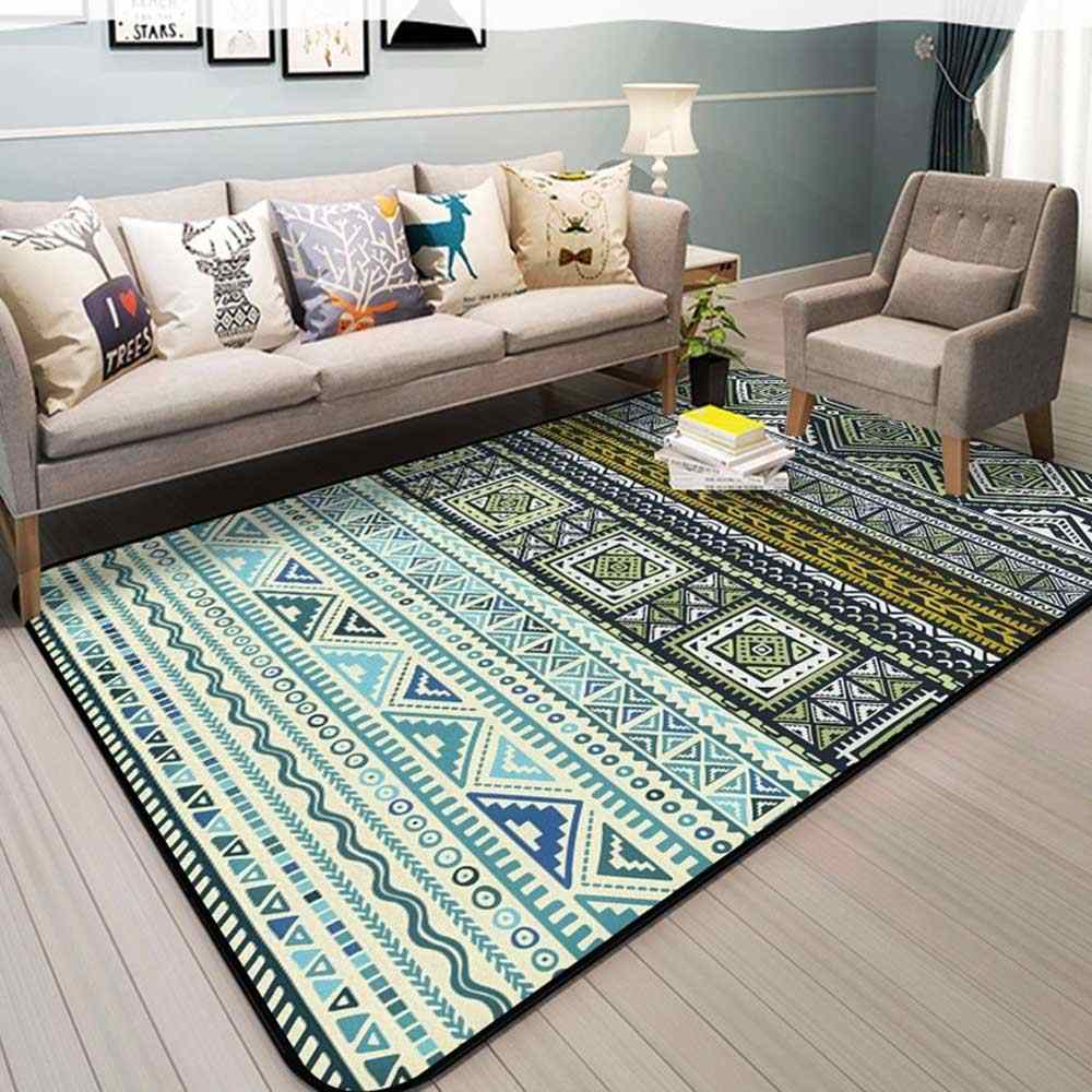 - если ковер размещают перед диваном в гостиной, то его длина должна превышать длину дивана на 20-50 см. Ширина при этом варьируется от 1,5 до 2,5 м и более в зависимости от того пространства, что остается перед диваном. Дизайнеры советуют ставить диван ножками на край ковра, отступая 20-30 см;