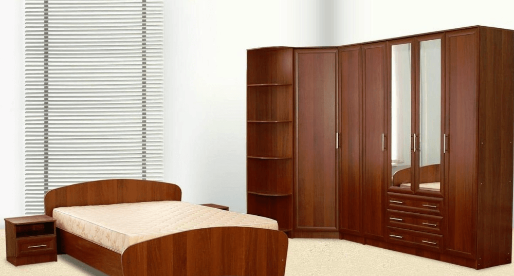- Форма аксессуара. Для небольших по площади помещений отлично подойдет угловой шкаф, шифоньер модульной сборки. Для оптимальной покупки мебели следует предварительно произвести замеры имеющейся площади в спальне, чтобы не ошибиться с габаритами шкафа.