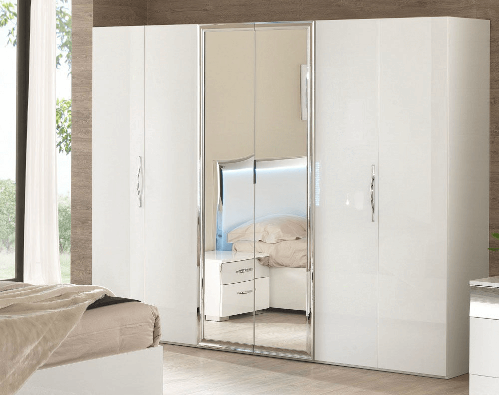 Белый шкаф в спальню является универсальным решением. Он делает помещение более светлым, хорошо сочетается с другими цветами в интерьере