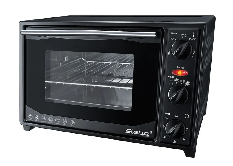Завершает ТОП печей агрегат производства Steba. Прибор отличается объёмом 20 литров и позволяет устанавливать рабочую температуру вплоть до 250 градусов. Из режимов в KB 27 U.3 предусмотрены верхний и нижний нагрев, которые можно включать одновременно, а также гриль и конвекция. Никаких лишних функций здесь нет, поэтому и стоимость мини-печи получилась максимально демократичной – от 6500 рублей. Длина сетевого кабеля в Steba KB 27 U.3 составляет 140 см, чего достаточно для удобного подключения к розетке.