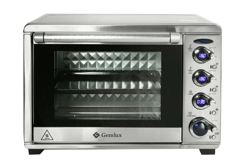 Следующей в списке лучших мини-печей с функцией конвекции представлена компания Gemlux. Это достаточно молодой, но очень успешный производитель, чья продукция производится на фабриках в Италии, Тайване, Южной Корее, России и других странах. Стоимость техники Gemlux очень демократичная, и выбранную нами модель можно приобрести всего за 8-9 тысяч рублей.