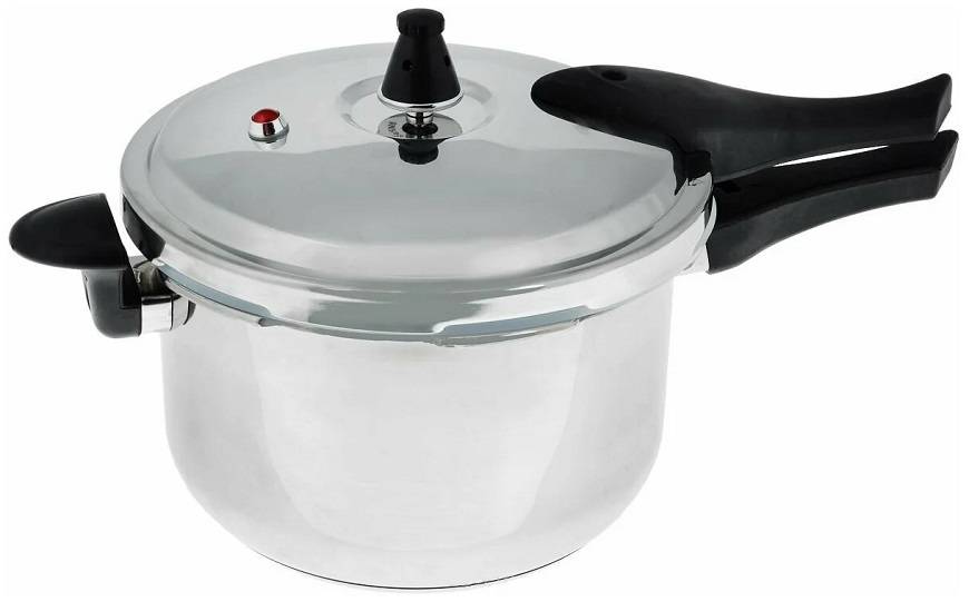Простой прибор, визуально напоминающий кастрюлю. Он имеет двойное дно и крышку с прорезиненным уплотнительным кольцом, которое обеспечивает герметичную фиксацию на основе. Она оснащена большой и удобной ручкой, а также клапаном для принудительного сброса пара. На крышке установлены два фиксатора-замка из металлического сплава. Скороварка ставится на плиту, а температура выставляется в зависимости от блюда.