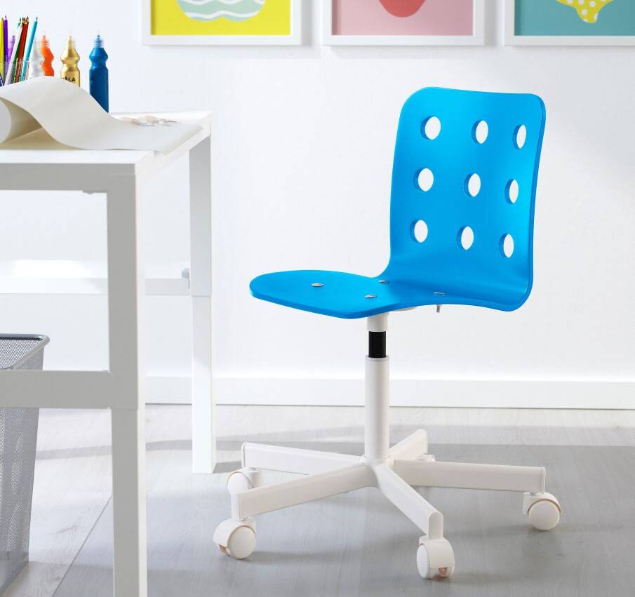 Детское кресло, как и стол, обязательно должно регулироваться по высоте, а также иметь максимально безопасную конструкцию. Сегодня, как правило, это прочная пластиковая основа и пружинный механизм, которые минимизируют возможность опрокидывания и выдерживают достаточно большой вес, обычно до ста килограммов. Чтобы обеспечить ребенку правильную осанку, следует выбирать стулья с регулируемым наклоном спинки и набивкой средней жесткости. Это очень важная часть общего плана по тому, как правильно организовать рабочее место школьника.