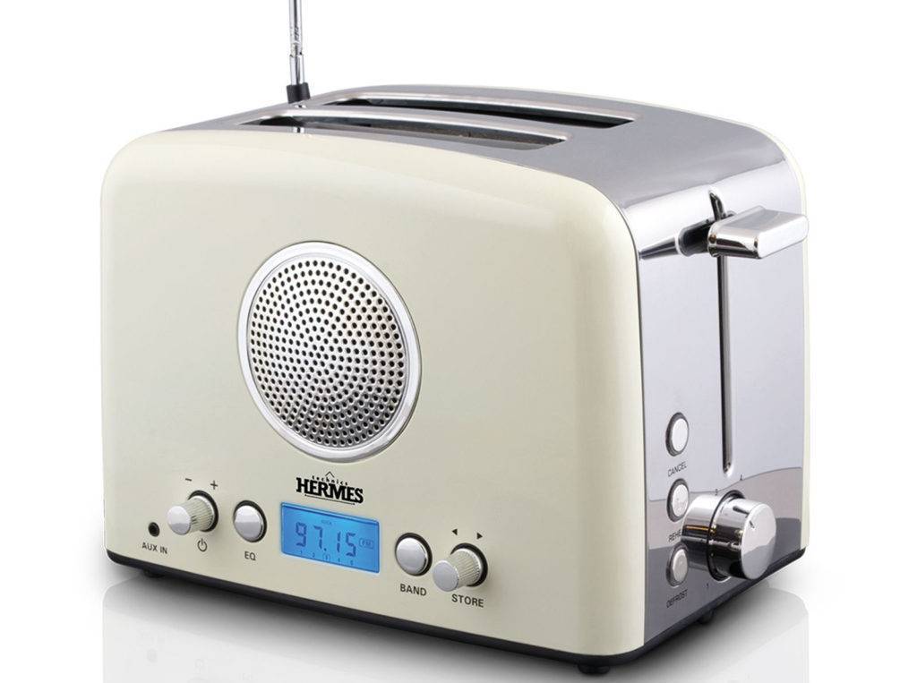 На первый взгляд, это несочетаемые функции. Но если подумать, то приходишь к выводу, что при обжаривании тостов радио очень кстати – под веселую музыку время ожидания завтрака проходит быстрее.