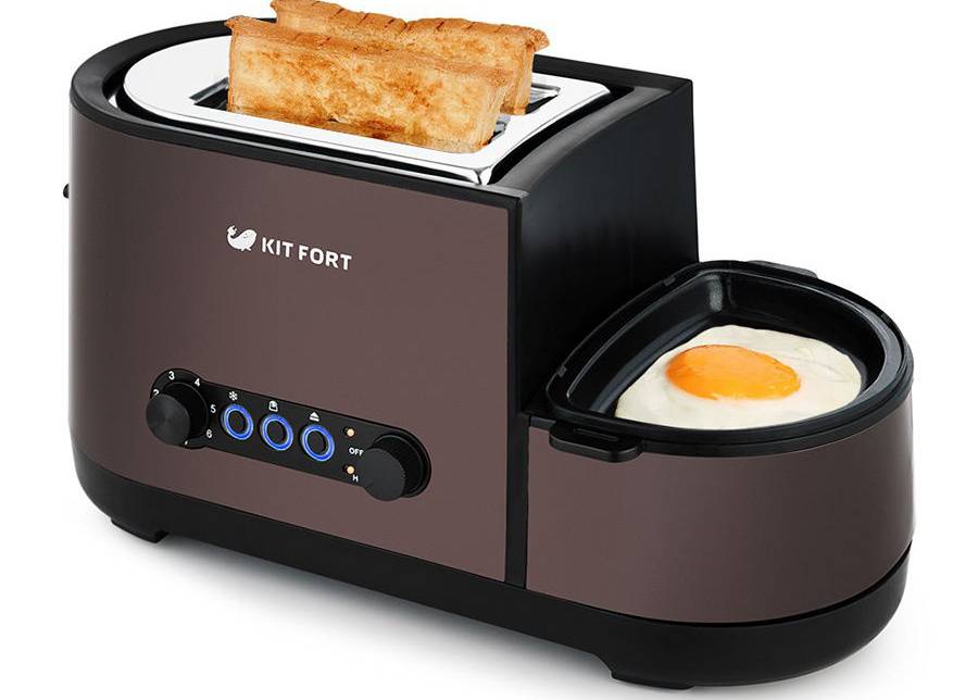 Kitfort KT-2012 – настоящий универсал. Он – в топе моделей со средней ценой. Назначение прибора – приготовление гренок, но не только.