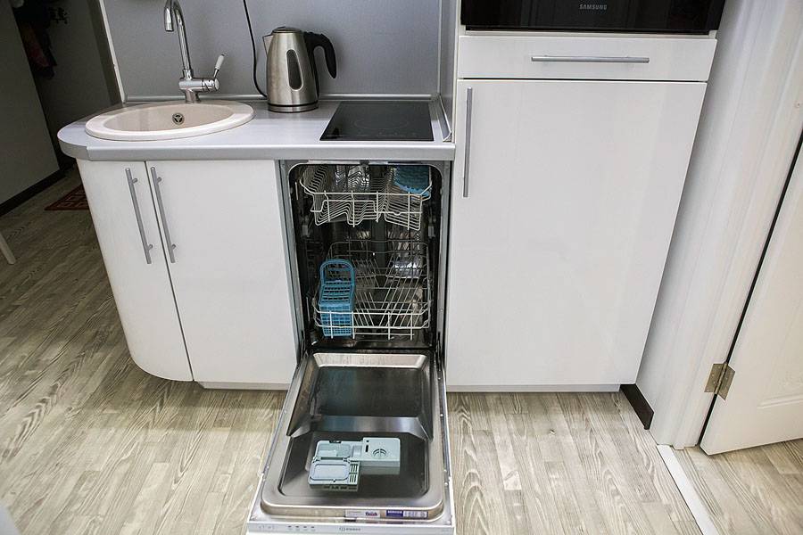 Правда, не забывайте о том, что такие модели вмещают намного меньше посуды – около 5 комплектов. Это идеальное решение для владельцев небольшой кухни, а также для холостяков и молодой пары без детей.