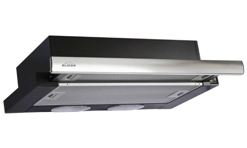 Потребляет 200 Вт. Показатель аналогичен ELIKOR Интегра 60. Производительность вытяжки — 550 м³, управление — кнопочное. Основной тип фильтра – металлический, но возможна установка угольного. Модель, работающая в режиме отвода и рециркуляции воздуха, оснащена выдвижной панелью. Цена — 6900 руб.