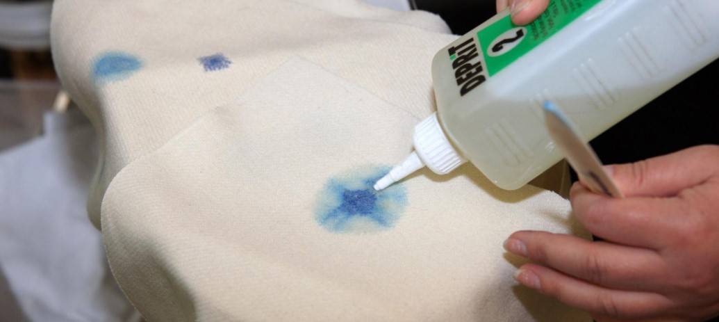 Здесь принципе точно такой же, как и в предыдущем пункте. Основной помощник – спирт и пятно нельзя тереть, иначе очаг пятна разрастется в размерах, а это нам не нужно.