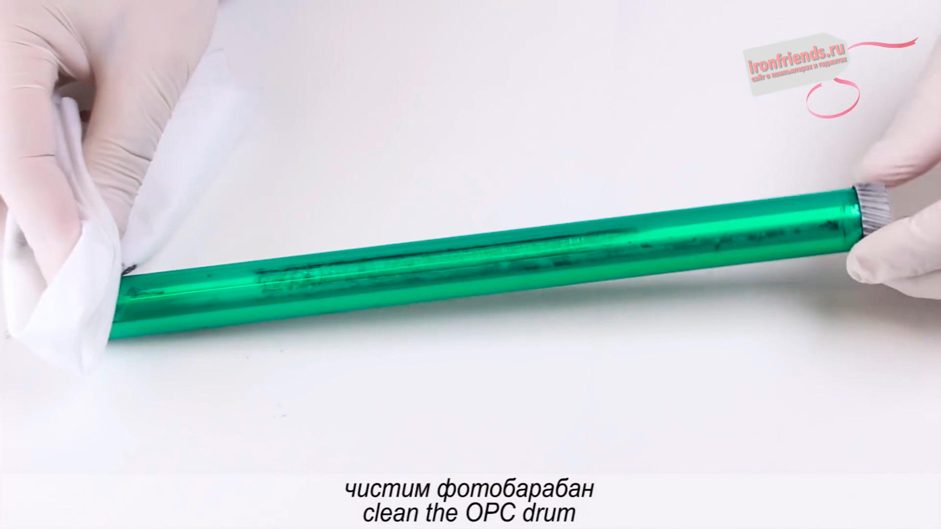 Фотобарабан нужно чистить крайне аккуратно, сухой мягкой не царапающей салфеткой, так как он покрыт чувствительным к механическим повреждениям и растворителям слоем.