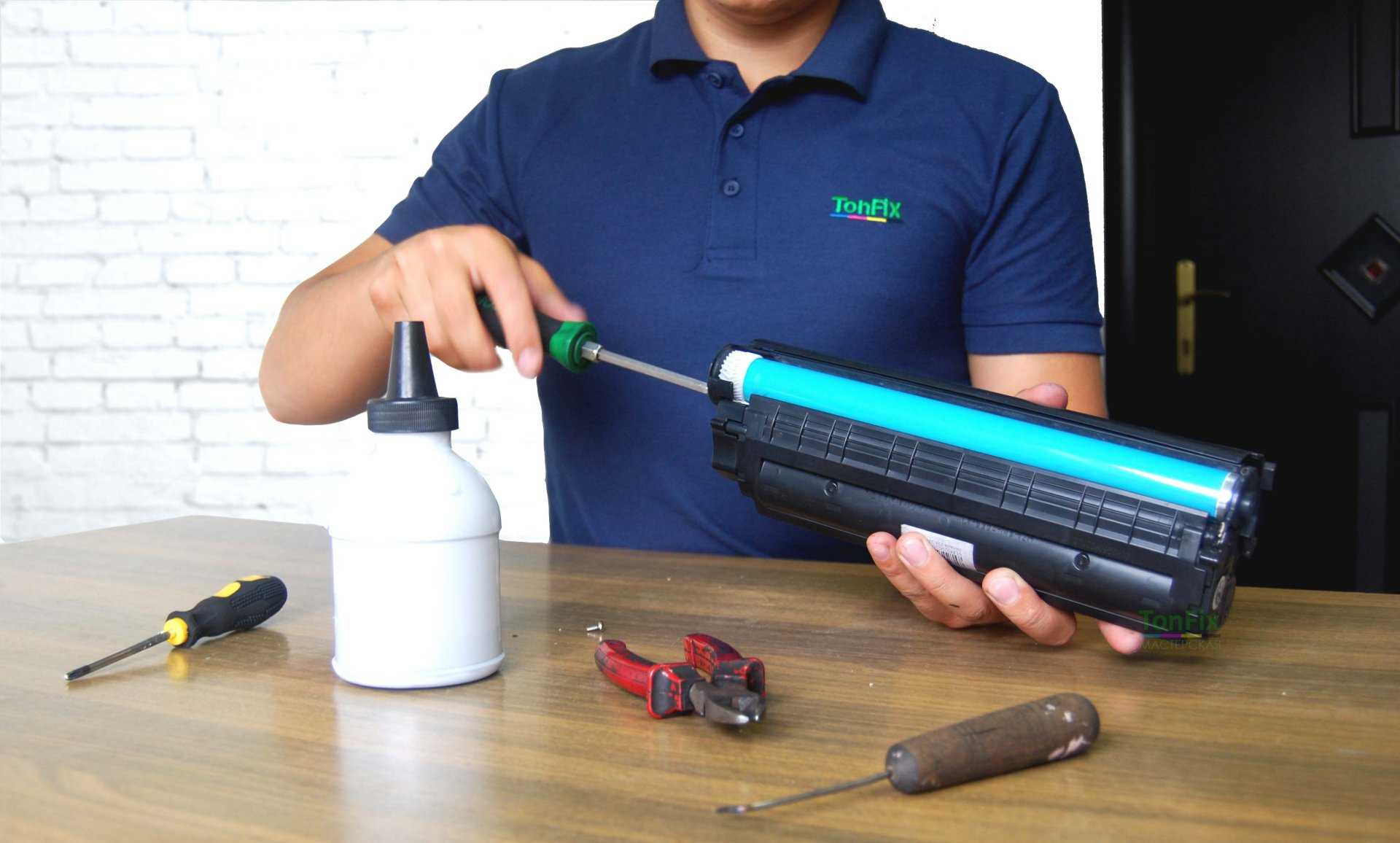 сложность работы. Если вы плохо разбираетесь в инструкции и не уверены, что сможете заправить картридж своими руками, лучше не беритесь за работу. Весь процесс, от разборки и заправки, до самой сборки принтера должен проходить в соответствии с инструкцией. Отклонения от требований могут привести, как к снижению качества печати, так и к поломке принтера;