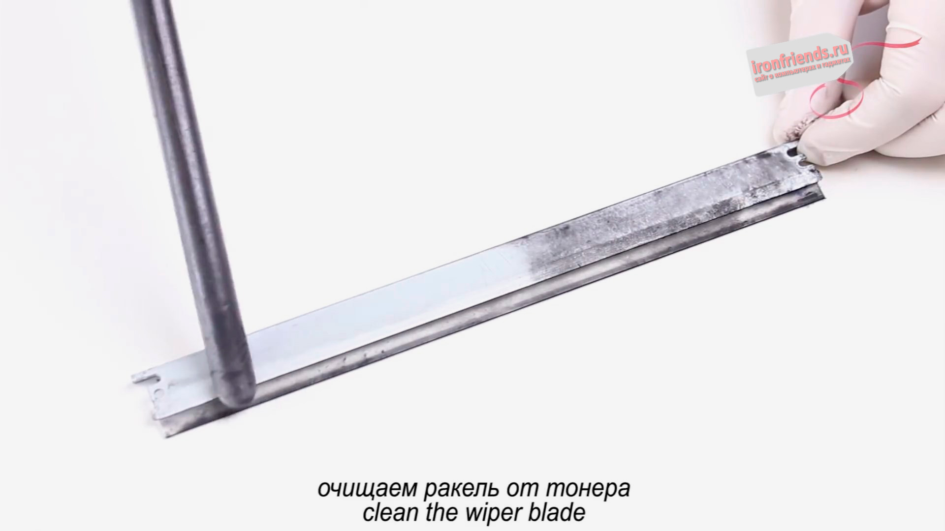 Многие опытные заправщики используют для этого чистый ацетон, также можно использовать изопропиловый (технический, продают в компьютерных магазинах) или обычный этиловый (медицинский) спирт. Этот вал сделан из очень устойчивой натуральной резины и не портится от растворителей, но злоупотреблять этим не обязательно. Самое главное делать это при первой заправке и при смене тонера на другой, чтобы разный тонер не смешивался друг с другом (он может иметь разный химический состав и вызывать нежелательные эффекты).