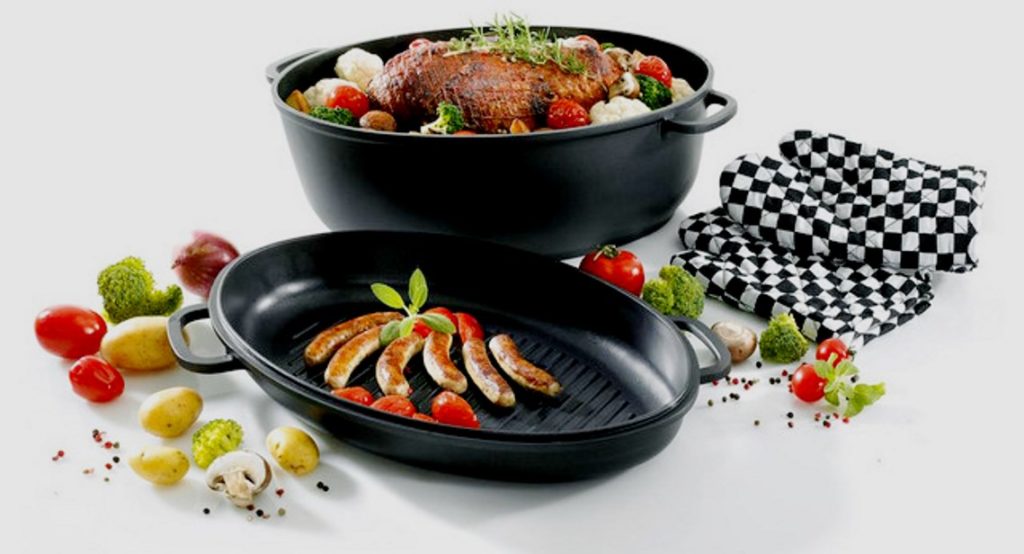 Чугунная кухонная утварь – отнюдь не пережиток прошлого, а старая добрая классика, проверенная веками. Увесистая, толстостенная емкость отлично подходит для приготовления пищи на любых варочных поверхностях и в духовых шкафах. Единственный момент, который следует учитывать, заключается в окислении современных чугунных сплавов, избежать чего поможет содержание посуды в чистом виде и отказ от хранения в ней готовых блюд.