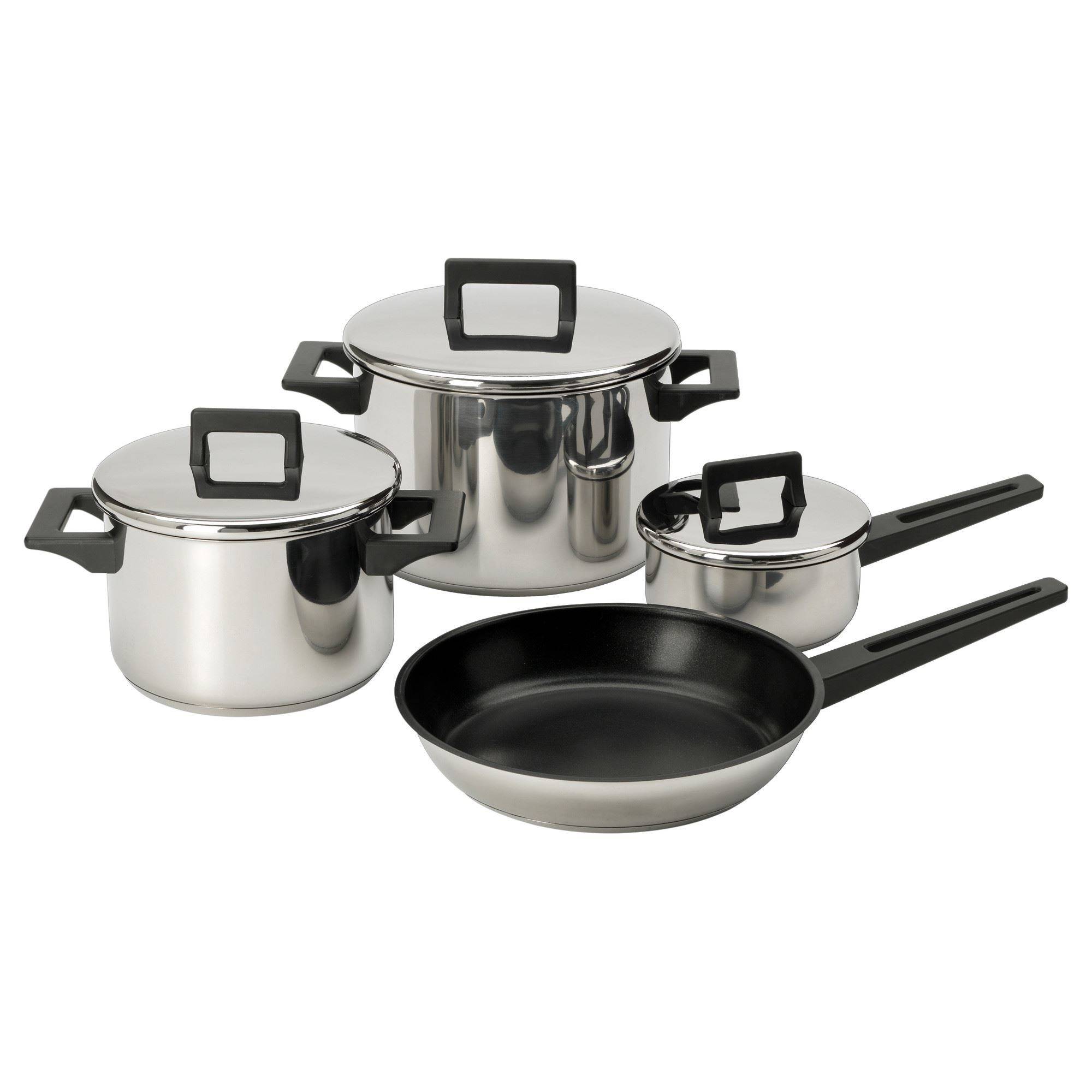 Посуда из нержавейки износостойкая, прочная, долго служит. В продаже есть наборы различных форм, но они не отличаются разнообразием цветового оформления. Главный плюс этого вида изделий — легкий уход.