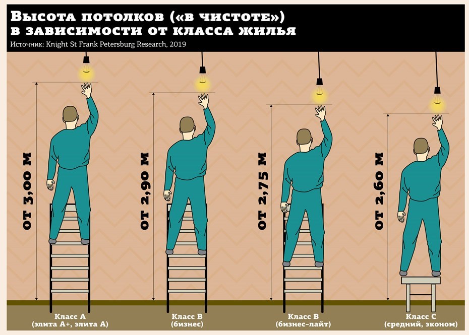 В современном строительстве применяется стандарт высоты потолка не менее 2,5 метров. В этом случае снижается общая стоимость строительства, что приводит к снижению стоимости квадратного метра. Мы считаем, что это оптимальное решение. Однако в ходе ремонтных работ может возникнуть сложность с отделкой потолочного пространства.