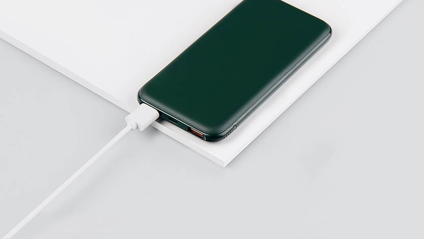 Аккумулятор сделан из софт-тач пластика, приятный на ощупь и не собирает отпечатки пальцев. Стильный и полезный аксессуар для любого путешествия, который не займет много места и выручит вдали от розеток.
