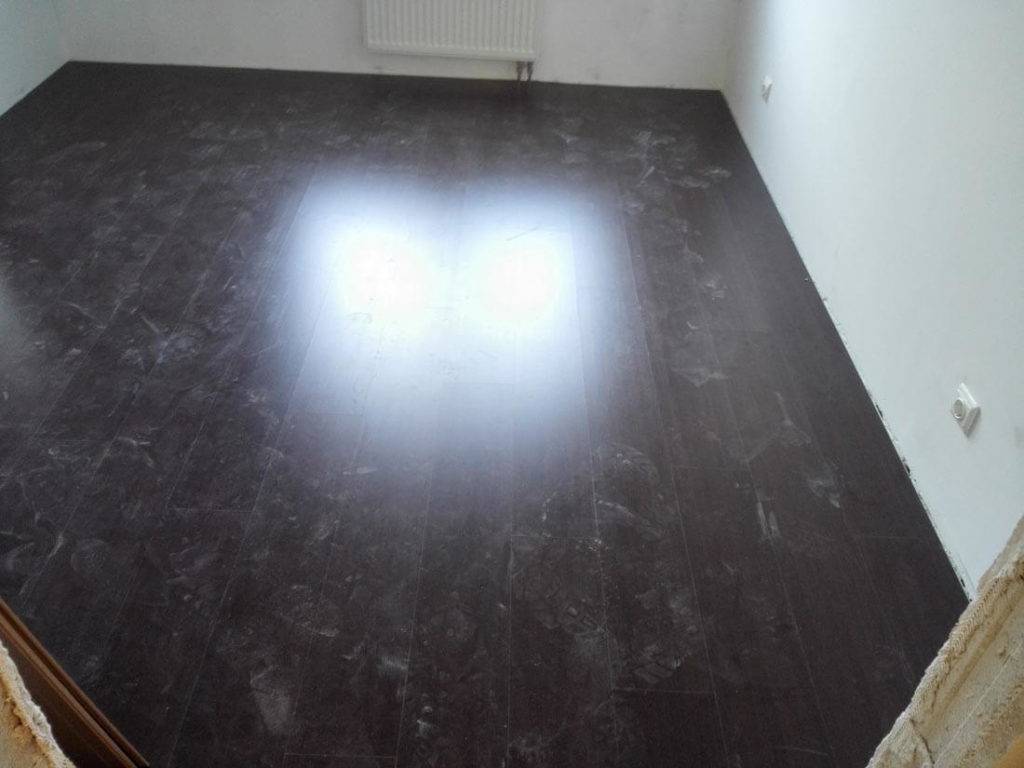 - На уже монтированном ламинате вам придётся пользоваться клеем. При намазывании стен или полосок обойного полотна появляется высокий риск испачкать покрытие.