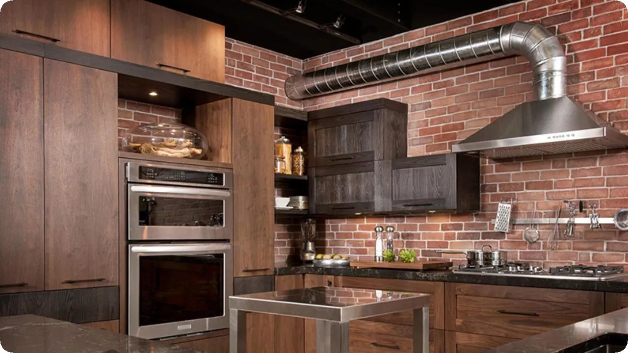 Объем большого помещения требует мощного оборудования. Устройство вентиляции на кухне вешается на максимальном удалении от поверхности печки, рекомендованном в техническом паспорте данной модели.