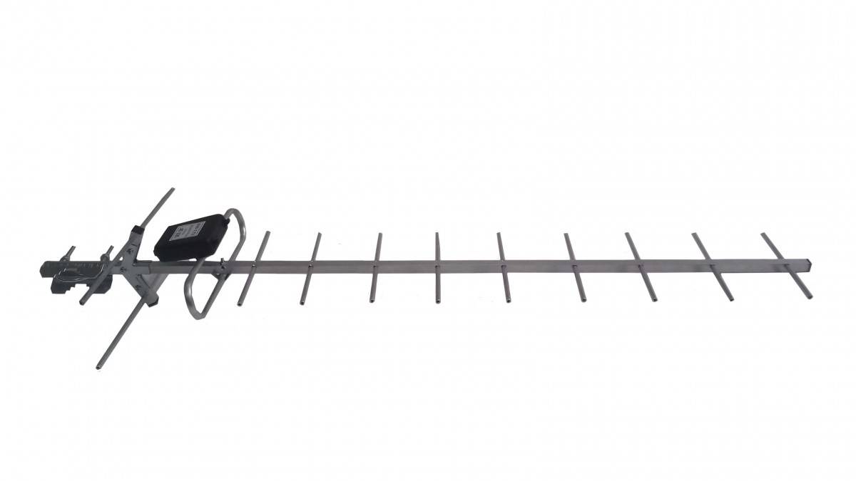 Представляет собой наружное активное устройство, которое осуществляет свою работу в дециметровом диапазоне. Может использоваться для приема цифрового и аналогового сигнала (DVB – T2, UHF). Эта модель оснащена малошумным усилителем большой мощности. Для питания этого усилителя (5В), можно использовать цифровой ресивер DVB – T2. Радиус приема цифрового телевещания этой модели составляет около 110 км. Усиление поступающего сигнала составляет 44 дБ. Присутствует опция самостоятельной регулировки усиления.