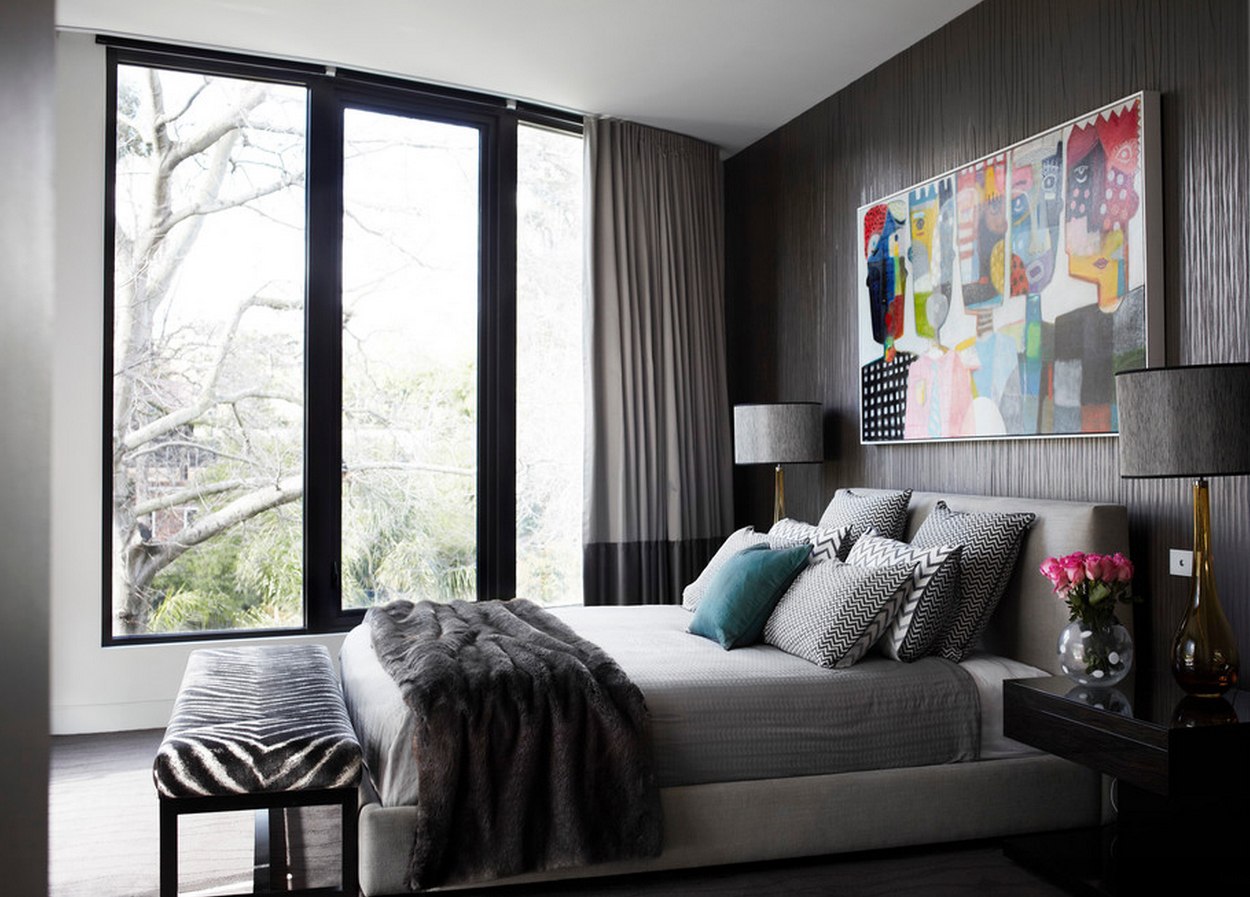 Интерьер должен быть тёплым, комфортным, законченным. Не должно возникать гнетущего ощущения, атмосфера должна быть приятной, настроенной на позитив. Идеально подходит стена у изголовья. Эта часть пространства остается пустой. Благодаря данному решению вид заиграет новыми красками.