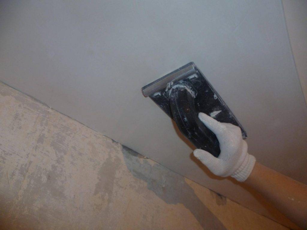 Для качественного прилегания, все края пенопластового потолочного плинтуса необходимо обрабатывать наждачной бумагой. Швы замазывают шпатлёвкой либо акриловым герметиком.