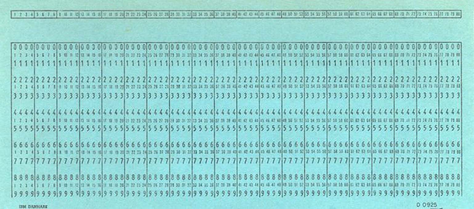В первые годы существования перфокарт появилось множество разных форматов с разным количеством строк и столбцов. Но к концу 1920-х годов стало понятно, что без единого стандарта не обойтись. И IBM разработала такой стандарт: 80 столбцов, 10 строк и прямоугольные отверстия — так на карточку входило больше информации.