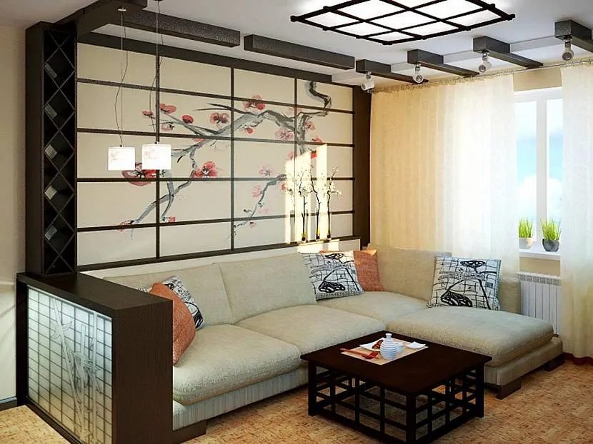 Большое помещение чаще всего зонируется с помощью раздвижных ширм, штор, декоративных занавесей. Отдельные направления дизайна имеют собственную специфику. Например, для арабского характерны ложные колонны, позволяющие изменить геометрию помещения, а для японского непременным условием является наличие раздвижных перегородок.