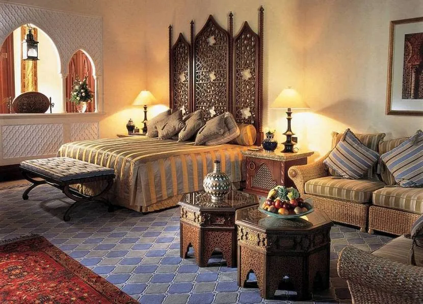 Арабское оформление соответствует религиозным требованиям и правилам. Оно появилось в начале 7 века. Сказочный интерьер был свидетельством избранности и достатка хозяина.