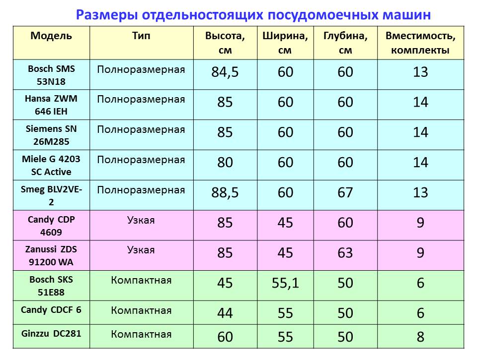 Итак, внимательно изучив размеры разных моделей посудомоечных машин, мы пришли к выводу, что большинство из них стандартные. Если тщательно подойти к выбору посудомоечной машины, то для любой кухни можно найти оптимальный вариант. Удачной вам покупки!