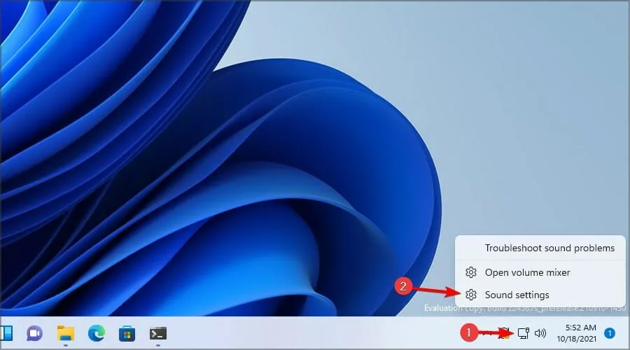 Щелкните правой кнопкой мыши значок «Звук» на панели задач и выберите «Настройки звука».
