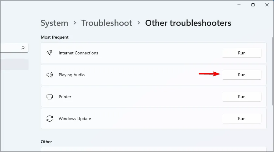 Найдите «Воспроизведение аудио» и нажмите кнопку «Выполнить».