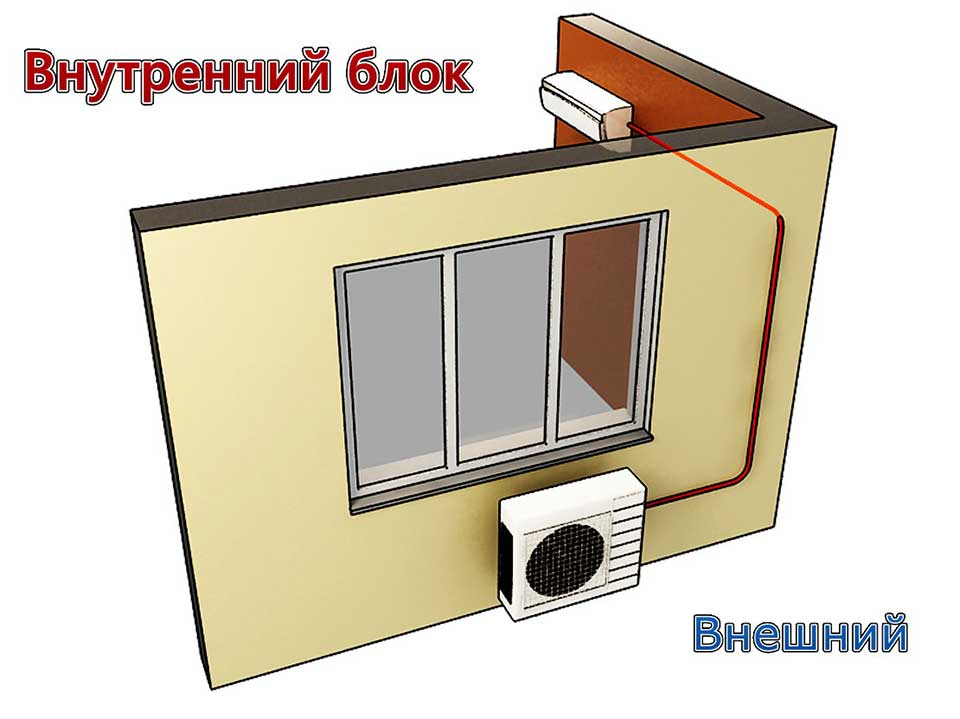 Многие считают, что наружная часть нужна для втягивания воздуха. Но это не так. На практике забор воздушного потока берет на себя внутренний блок, находящийся внутри комнаты и не доставляющий проблем пользователям в плане шума.