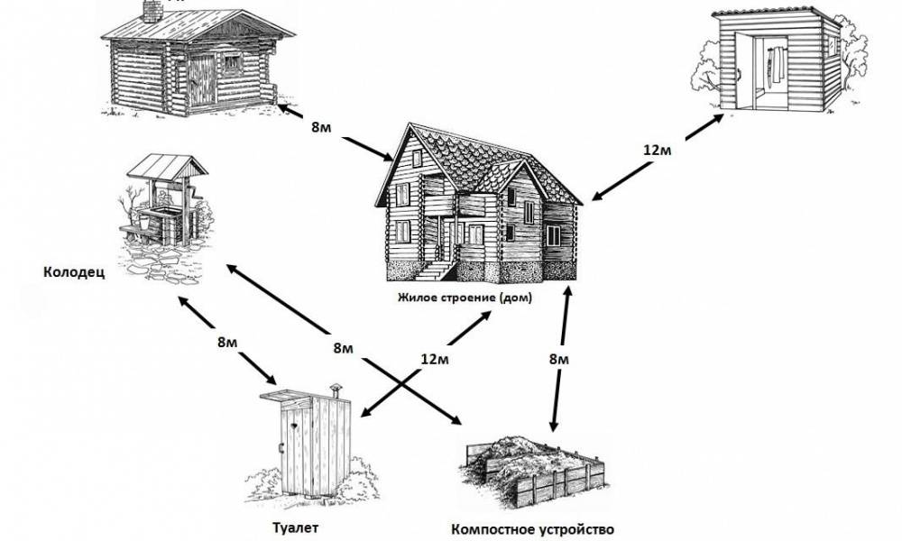 Место для колодца не должно создавать помехи проезду и не перекрывать свободный доступ к подсобным помещениям и хозпостройкам. При обустройстве объектов водоснабжения и канализации нужно ориентироваться на положения СНиПа 2.04.03-85, чтобы не допустить загрязнения источников воды для питья и подмывания оснований строений. Так, расстояние от колодца до уличного туалета не должно быть менее 8 метров.