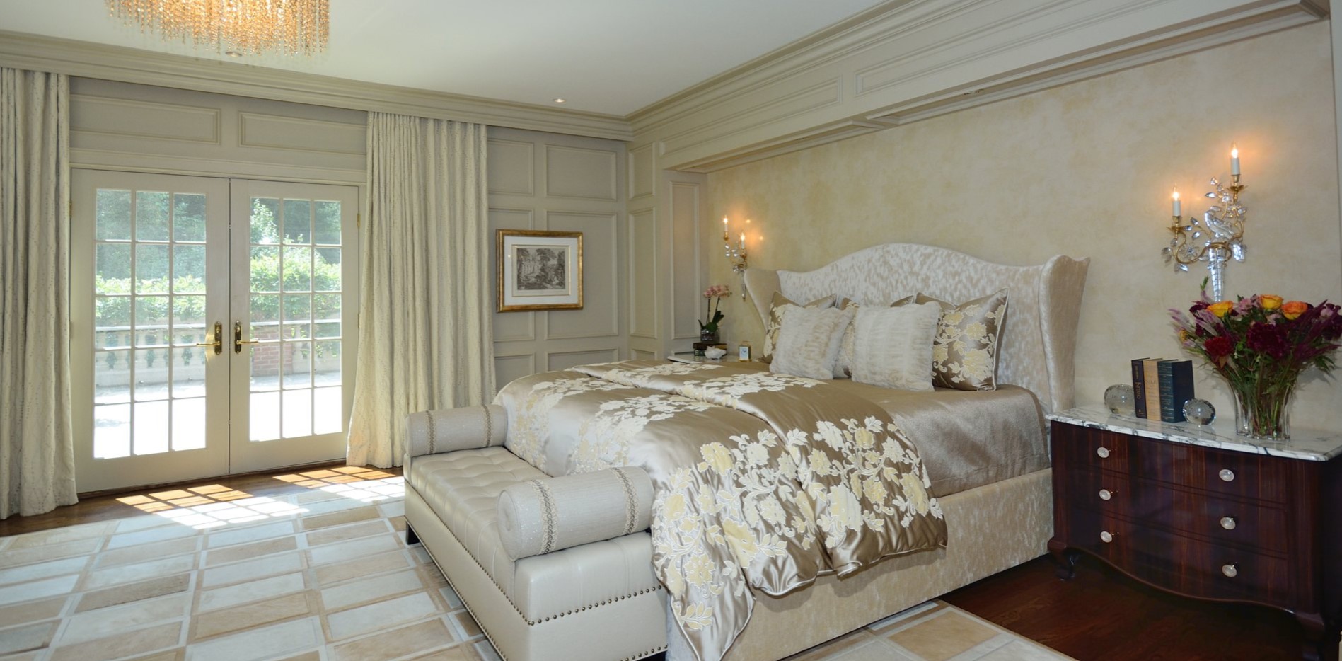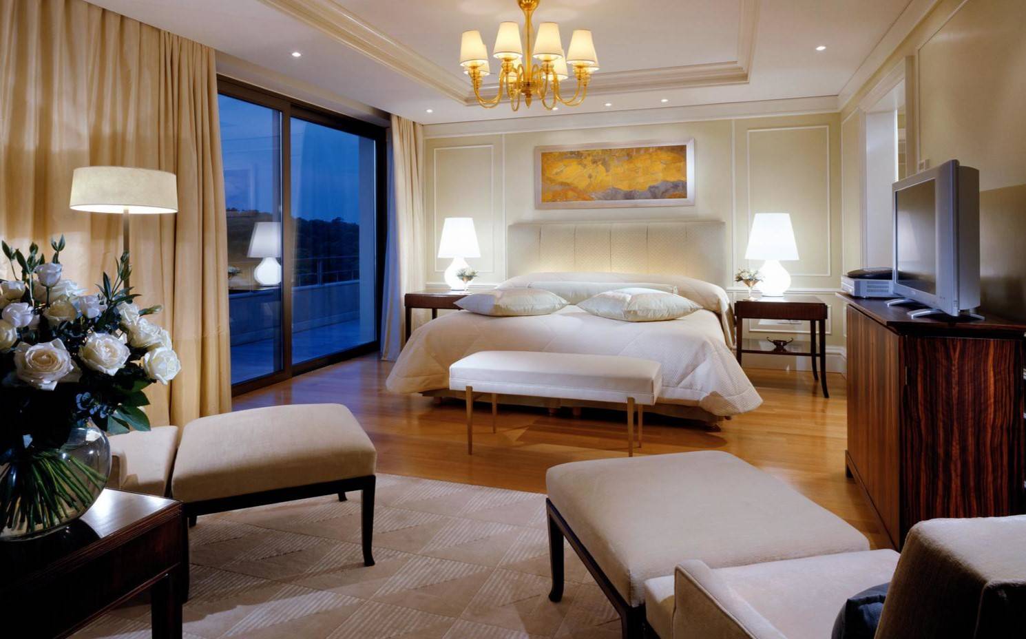 Спальню с элементами роскошного благородного классического стиля рекомендуется оформлять в достаточно просторном помещении.