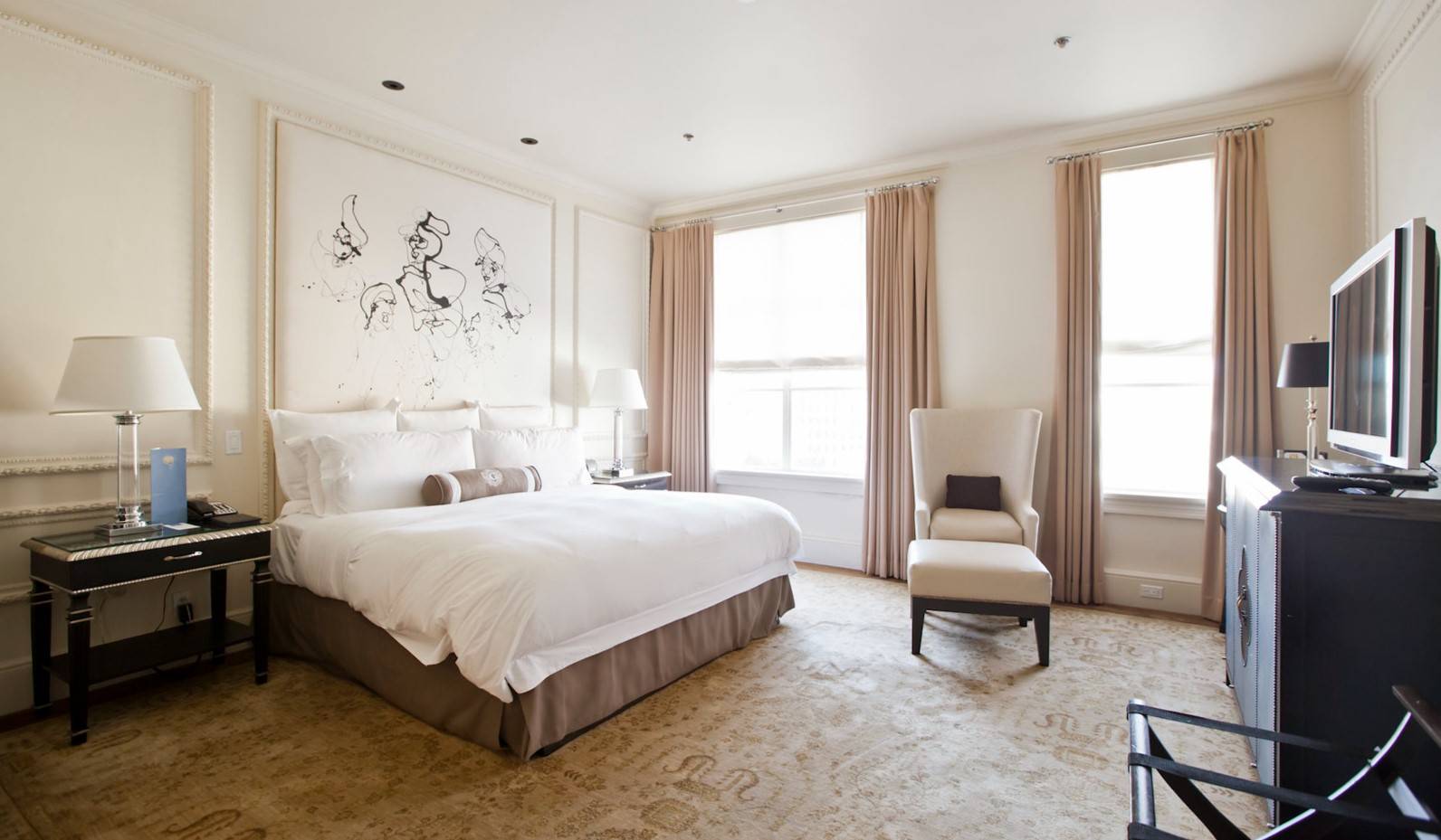 На фото спальная комната в бежевой гамме