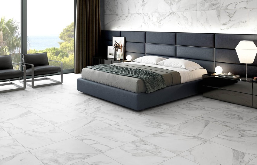 - напольная плитка получила распространение в последние годы — прохладное покрытие будет радовать собственников квартиры в жаркие летние дни.