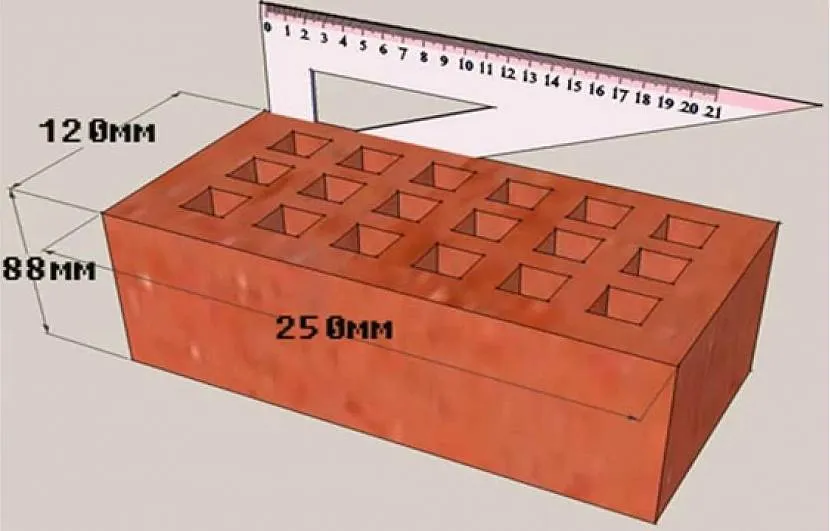 Красный кирпичные изделия производят на основе глиняных брикетов, которые спрессовывают методом обжига. Размеры и технические характеристики изделия регулируются ГОСТом 530-2007 и составляют (в миллиметрах):