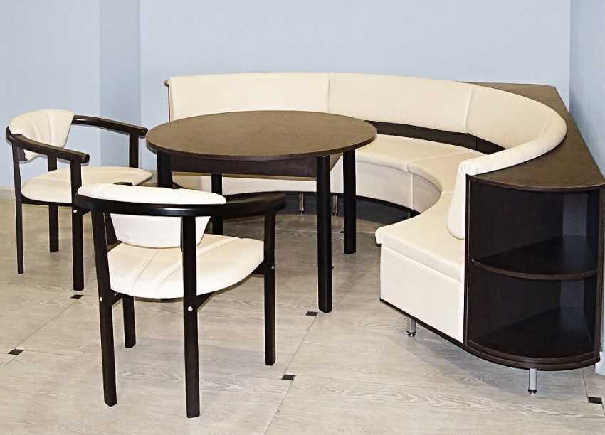 Полукруглый вариант занимает больше места, нежели другие модификации. Однако такие изделия отличаются презентабельным внешним видом. Полукруглая конструкция способна украсить любой интерьер. Специалисты рекомендуют быть внимательными при выборе обивки для таких моделей, так как она должна быть максимально устойчивой к износу.
