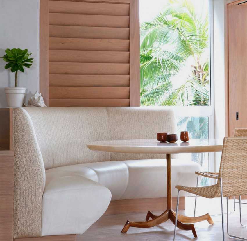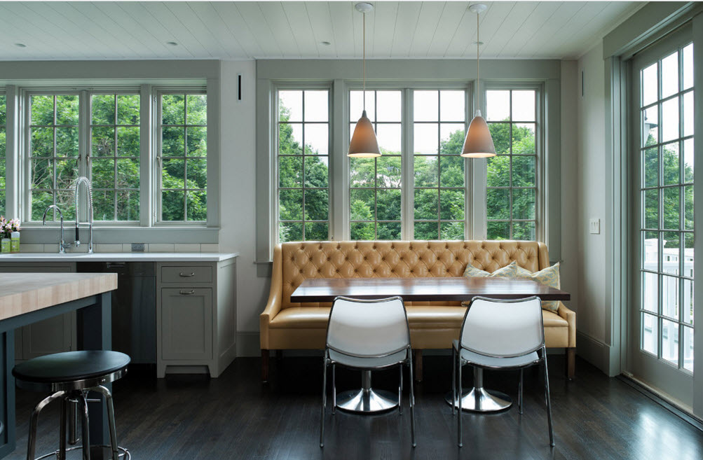 - Обыкновенные обеденные диванчики. Используют сугубо для приема пищи, долгих посиделок за столом. Переночевать на таком вряд ли получится. Во всяком случае, удобно поспать вам не удастся.