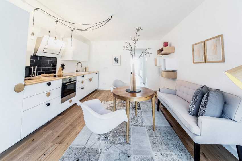 В маленьком помещении сложно поместить все необходимые предметы и технику. Часто люди объединяют кухню и гостиную, чтобы получить просторную комнату.