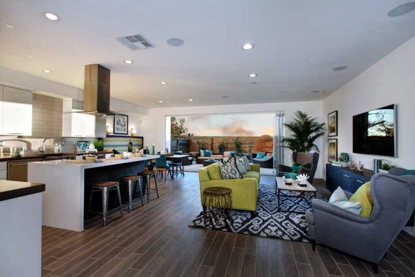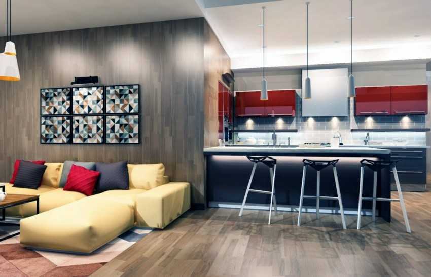 При обустройстве кухни-гостиной особое внимание следует уделить оформлению – именно от него зависит, насколько гармоничной будет обстановка. Чтобы пространство смотрелось единым целым, необходимо: