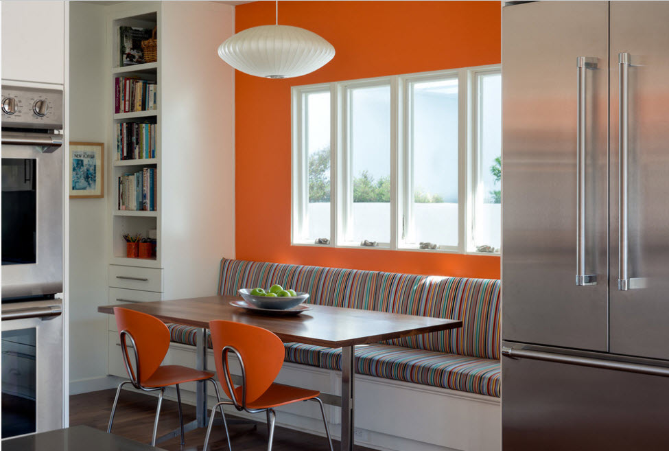 Современные диваны маленьких размеров для обеденной комнаты достаточно многофункциональны и удобны.