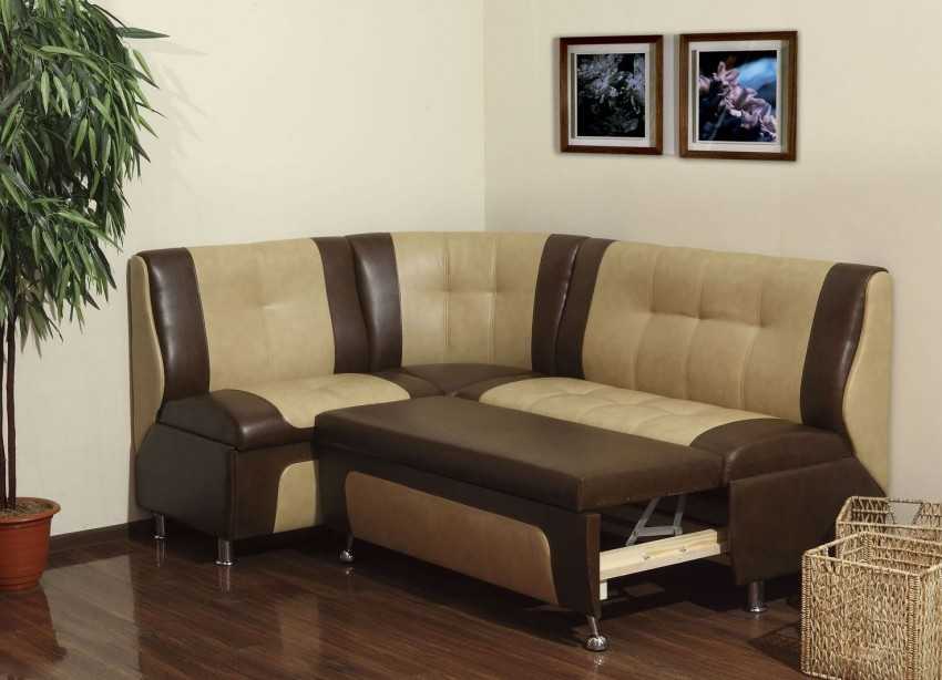 Кухонный диван со спальной позицией, оборудованный механизмом «дельфин» является наиболее популярным