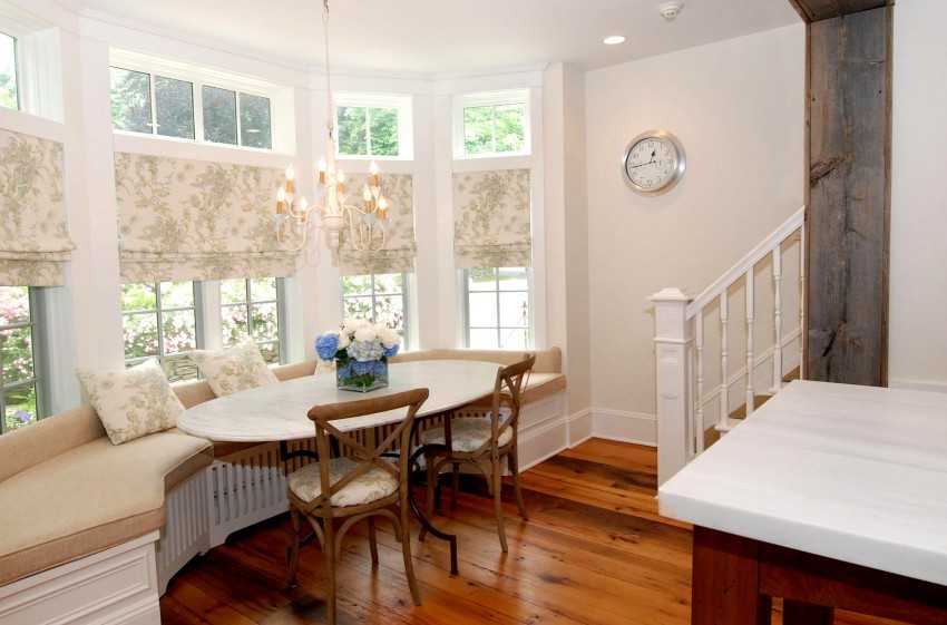 - Небольшой диванчик напротив окна в качестве дополнения к стульям;
