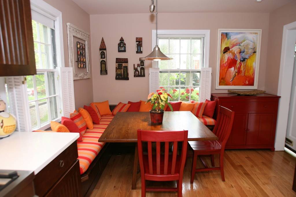 - Небольшой диванчик напротив окна в качестве дополнения к стульям;