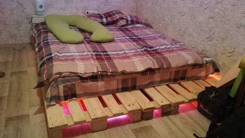 Смелым решением в этом случае является самостоятельное изготовление основания кровати из старых деревянных поддонов. Для этого понадобится минимальный набор материалов, инструментов, умения и средств.