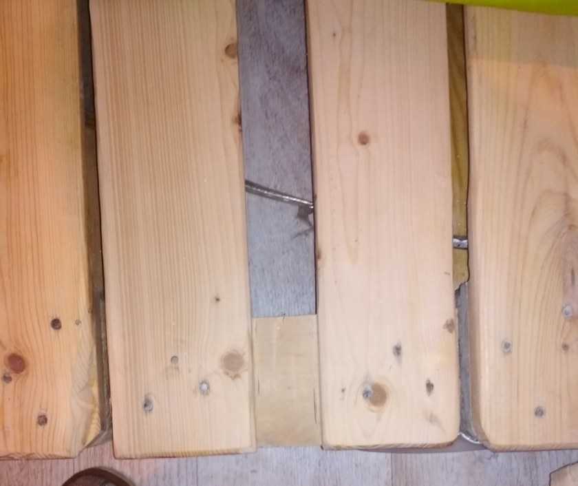 Доски наклеиваются на каркасную основу при помощи клея для столярных работ, подравниваются по кромочной части ножек (верхней), крепятся струбцинами, выжидается время, необходимое для полного высыхания клеевого состава.