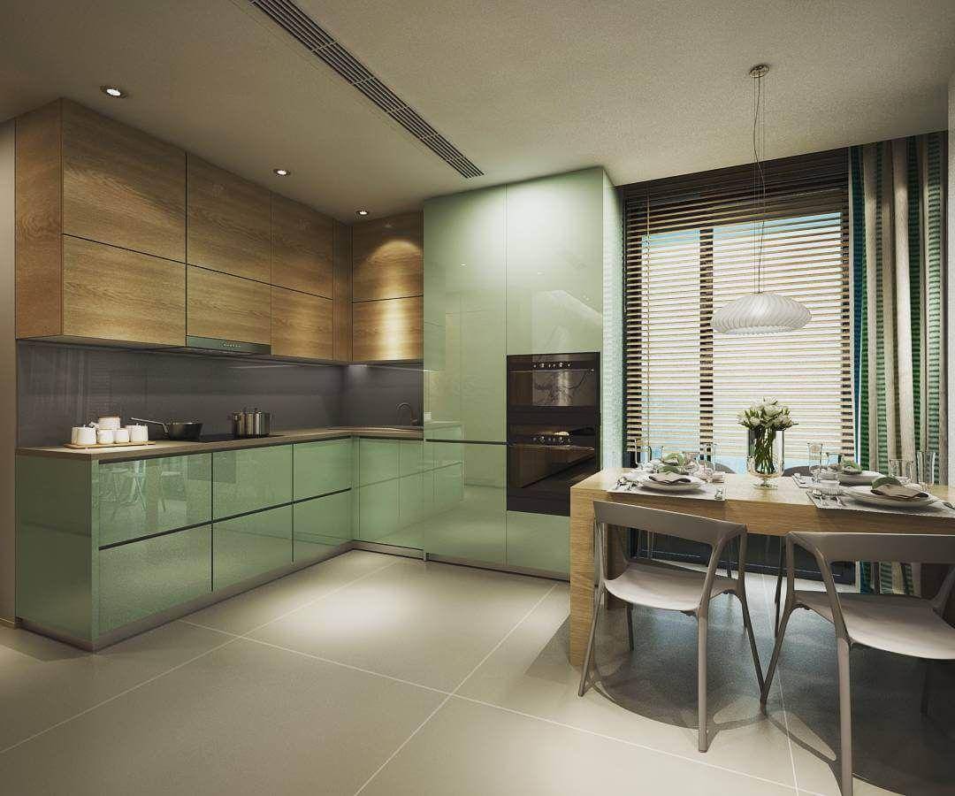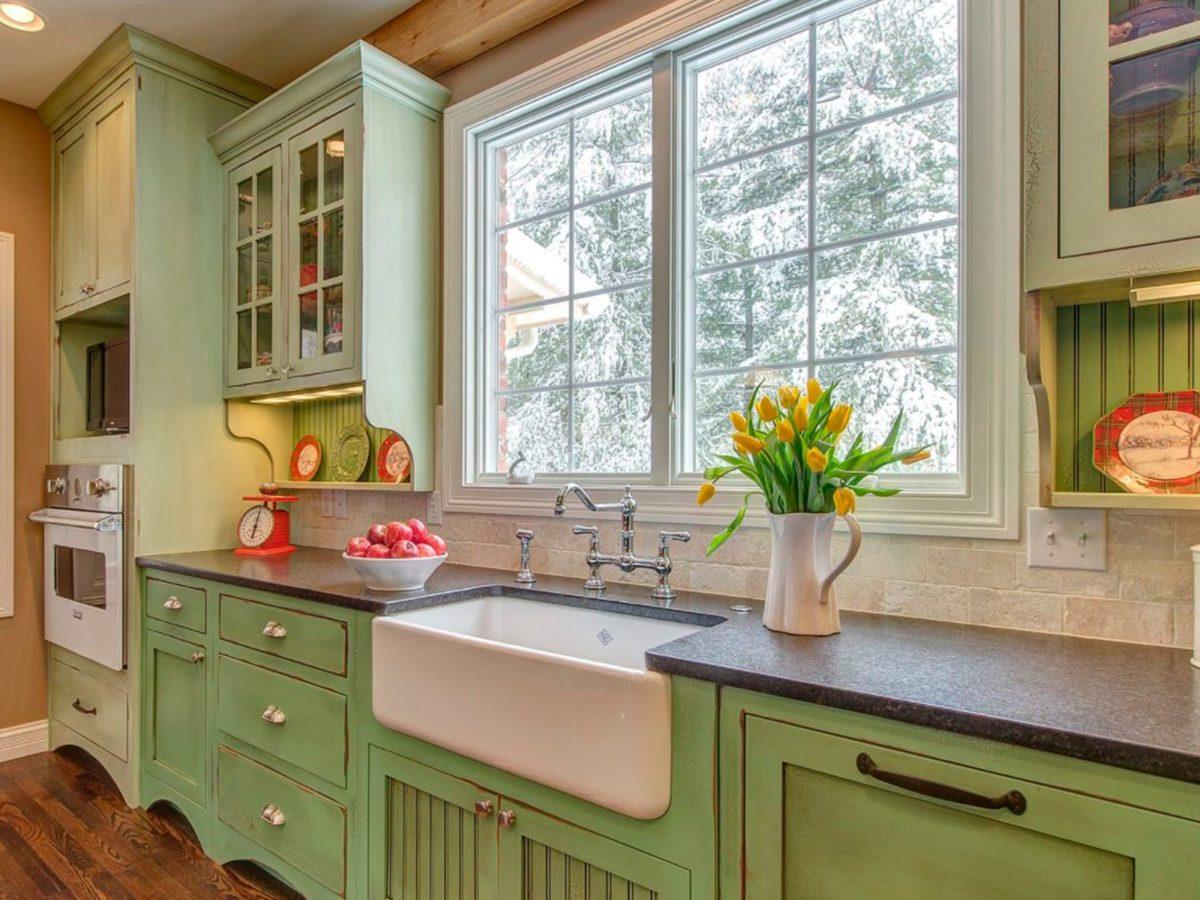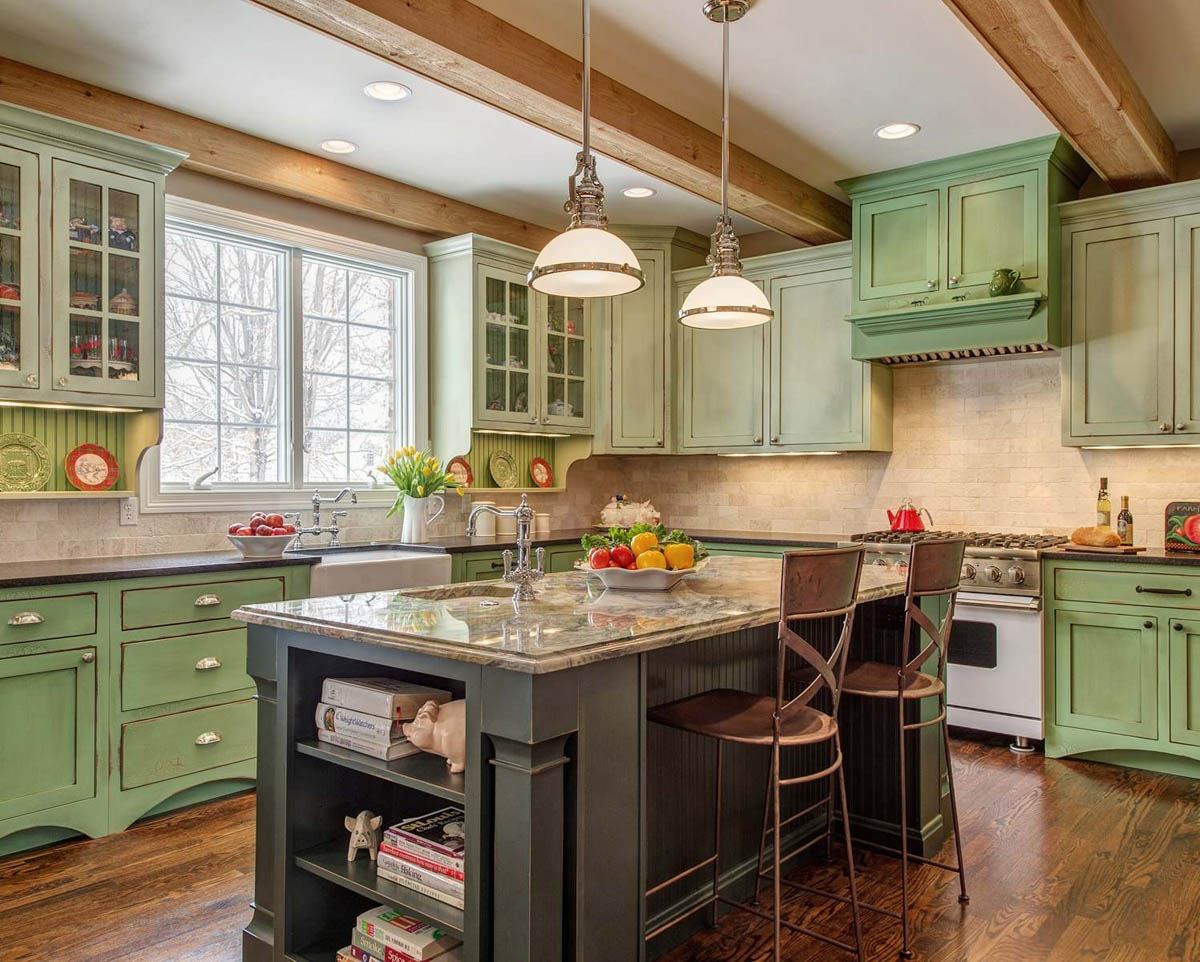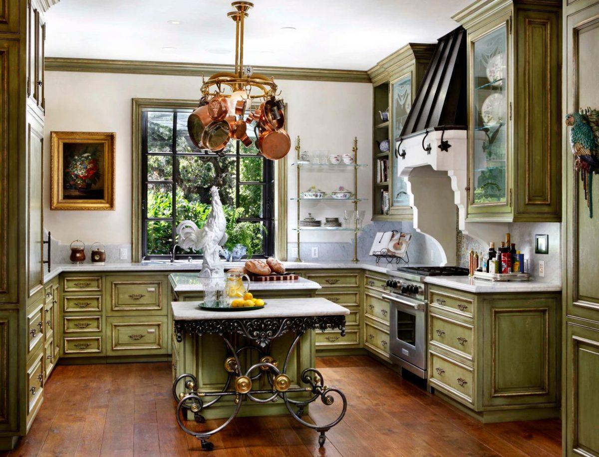 Однако лучше всего оливковый подходит для классических и минималистических стилей. Он добавляет кухне элегантности и утончённости. Витиеватые мотивы классической лепнины безупречно сочетаются со светлыми оливковыми тоннами. А добавление этого цвета в резную и ажурную мебель — секрет превосходства.