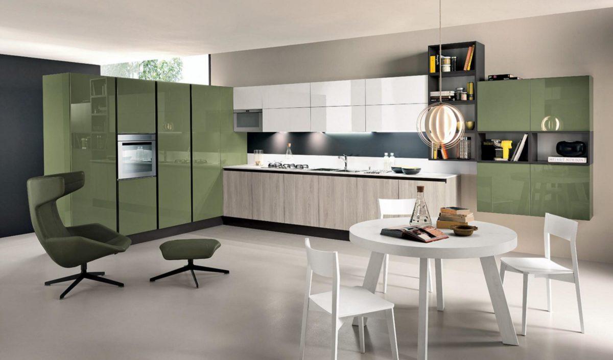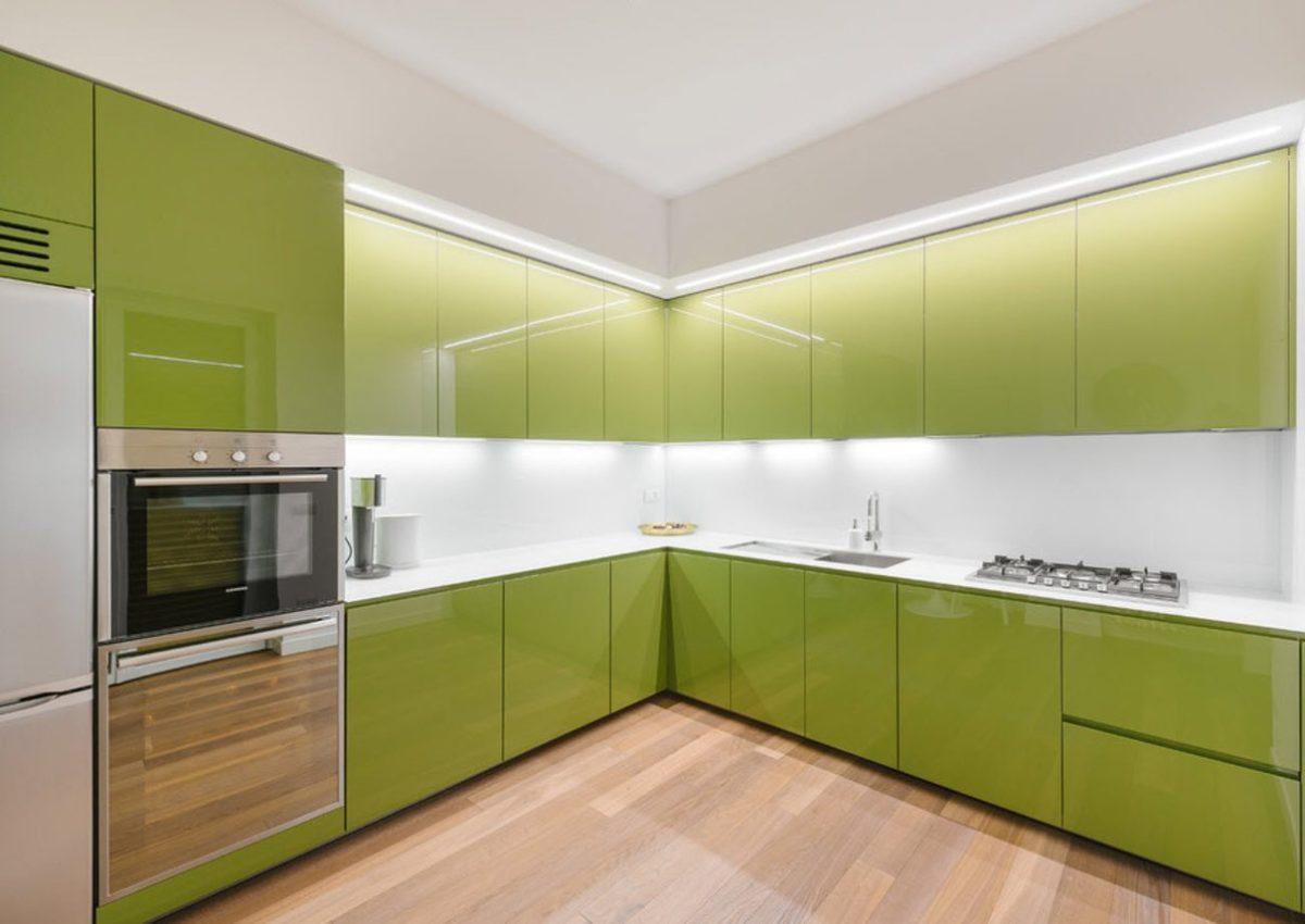 Приятная атмосфера уюта и благополучия — результат применения оливкового на кухне. С его помощью можно добиться красивого и стильного результата.