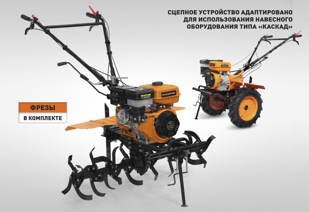 Мотоблок CARVER MT-900 является моделью профессионального уровня, так как оснащен двигателем с мощность 9 л.с.